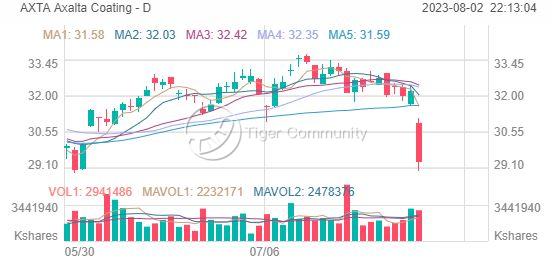 2. $Axalta Coating(AXTA)$ plunged 13.39% as it missed earnings and outlook