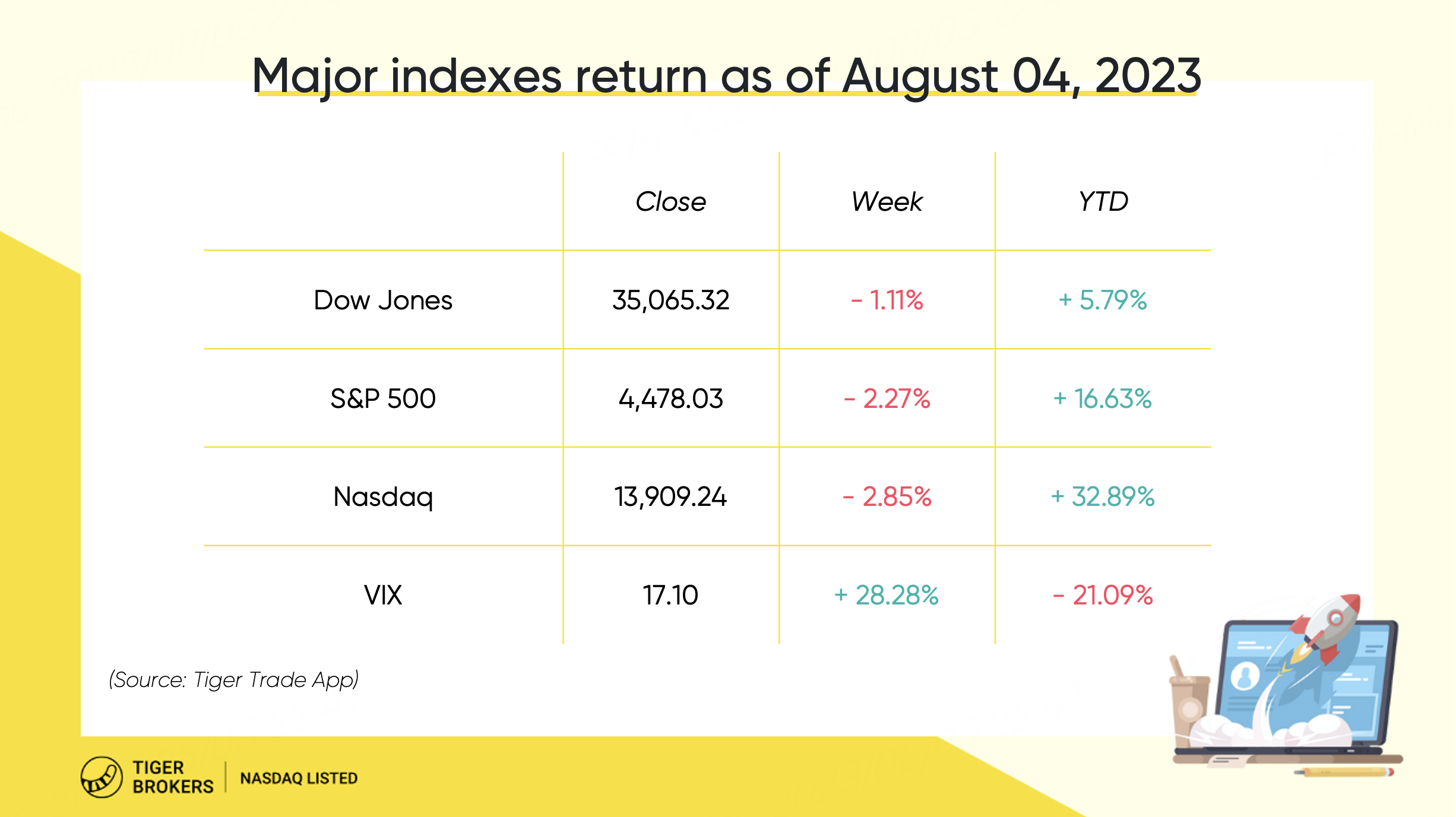 All three major U.S. Indexes struggled last week after a Fitch downgrade weighed on investor sentiment and spurred a sell-off. Investors braced for more possible downside surprises after disappointing earnings from Apple.