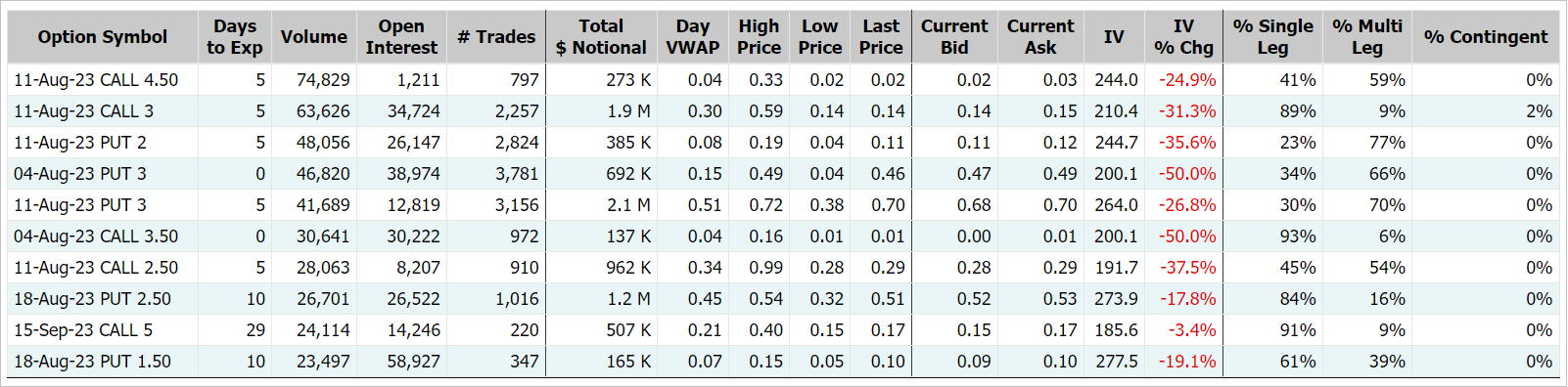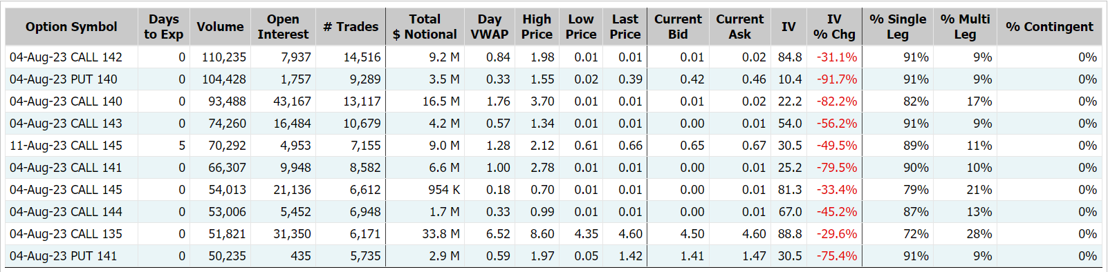 Data From CBOE Trader Alert, as of 4 August 2023 EDT
