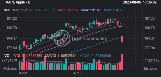 $Apple(AAPL)$ shares fell 4.8% Friday, the day after the company shared its fiscal third-quarter earnings report that saw the company forecast a decline in revenue in the September quarter, which would be the company’s fourth in a row. Apple’s decline Friday was its worst day so far in 2023, and its largest loss since Sept. 29 last year. The stock is up 40% so far this year.