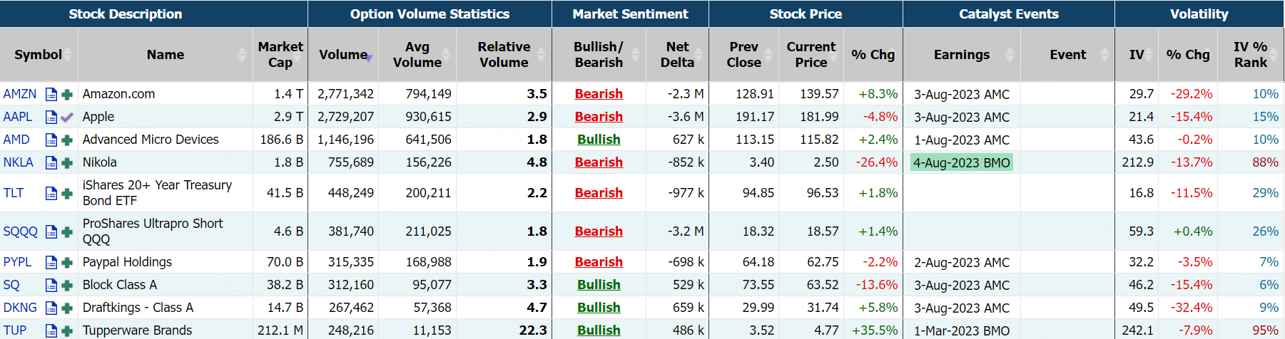 Option Movers | Apple and Amazon's Volume Doubles; Tupperware to $1?