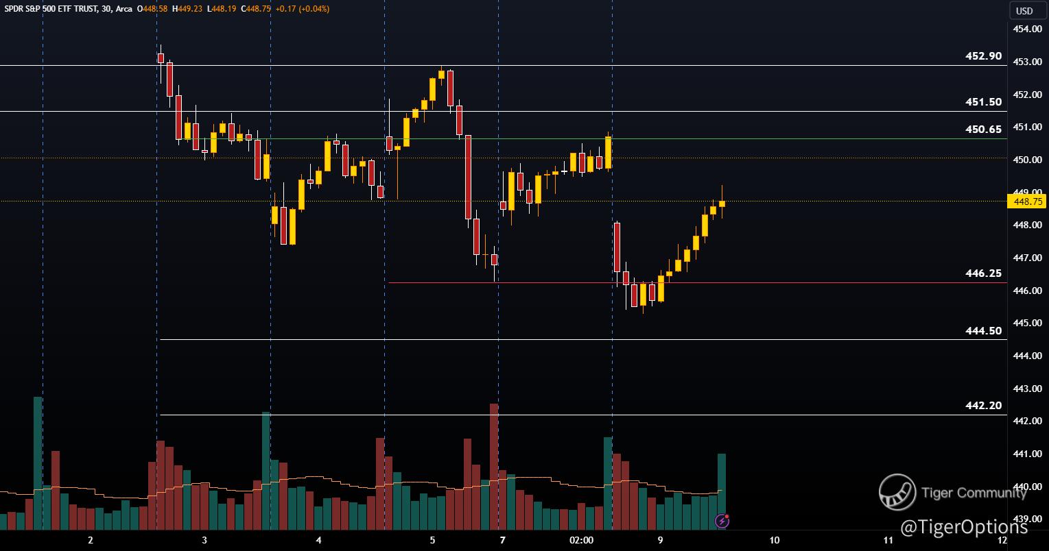 Buy Calls/Sell Puts when the price is above 450.65. Take profits when the price reaches 451.50-452.90 or anytime when you’re in profits. [Great]