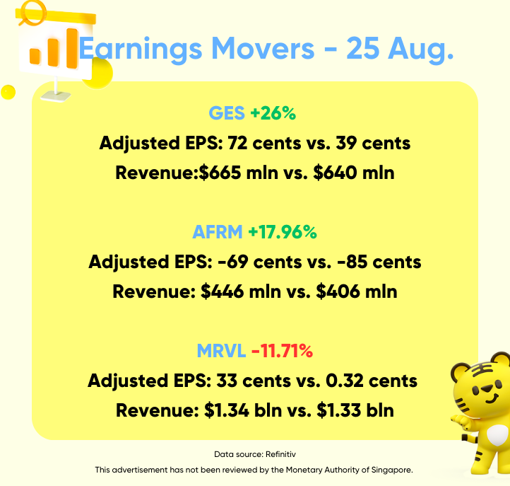 Top movers | GES, AFRM add 20% on strong results; MRVL slightly beats but plunges