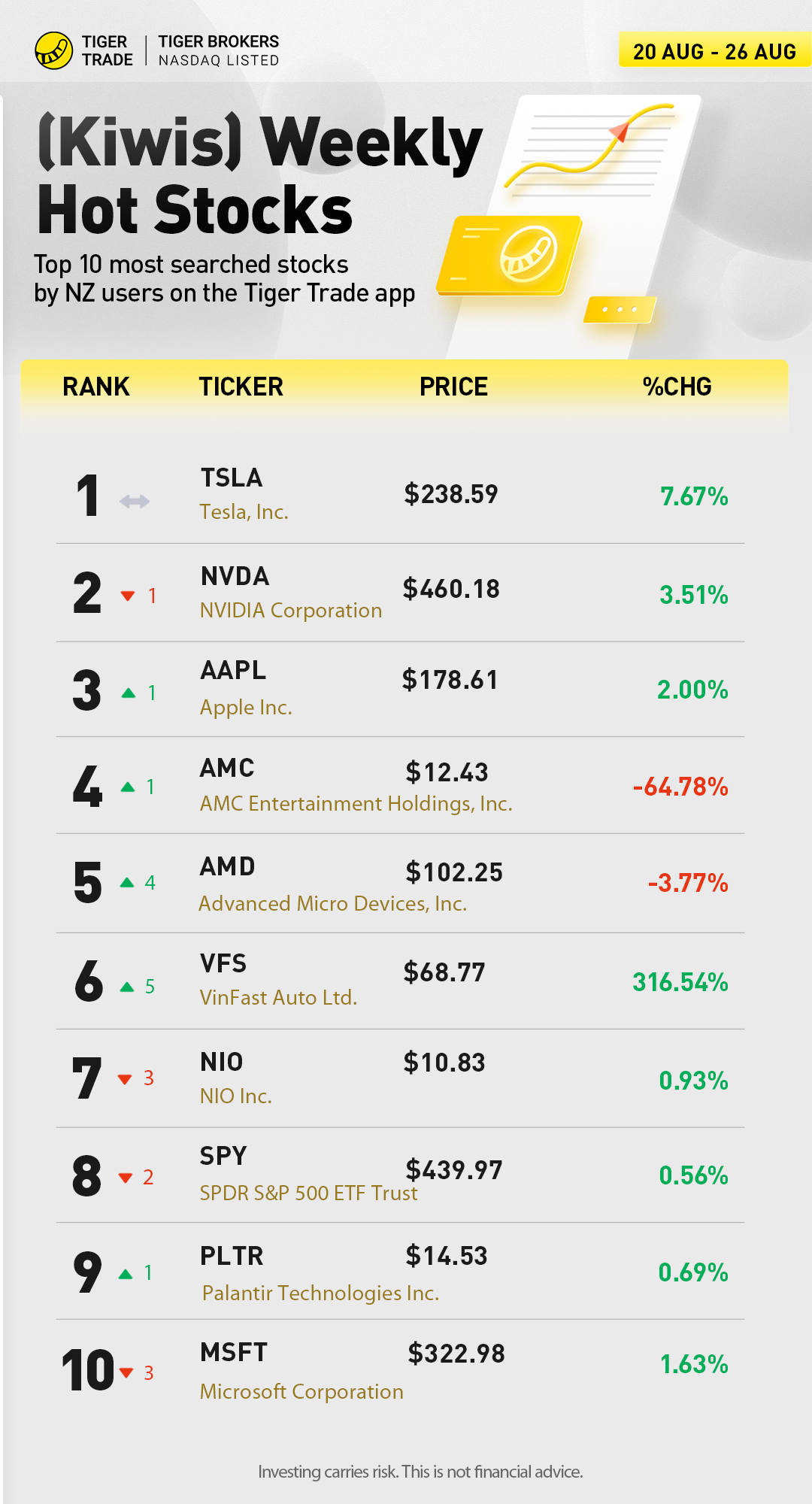 Here I will post the 10 most searched stocks by New Zealand users in the Tiger Trade App every week. Don't miss my updates!!!