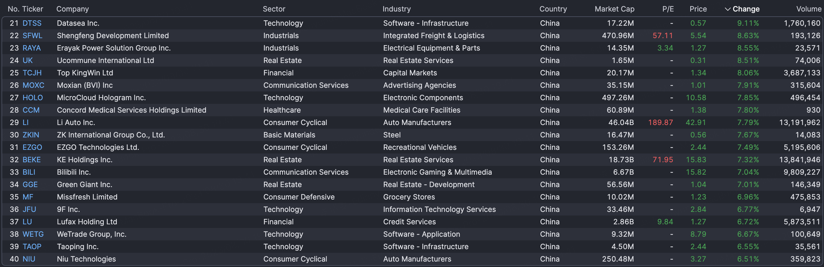 The company like $Tiger Brokers(TIGR)$ $Pinduoduo Inc.(PDD)$ $Alibaba(BABA)$ also post a positive earnings,which boosted Chinese stocks on Tuesday. On August 29, the market witnessed exceptional performance from several prominent Chinese concept stocks. $Tiger Brokers(TIGR)$ soared by an impressive 28% , and $Pinduoduo Inc.(PDD)$ achieved an extraordinary surge of over 15%, setting the record for the largest increase in three months. In addition, $Li Auto(LI)$ experienced a significant increase of 7.79%, while both $KE Holdings Inc.(BEKE)$ and Bilibili (BILI) $Bilibili Inc.(BILI)$ enjoyed an increase of over 7%.