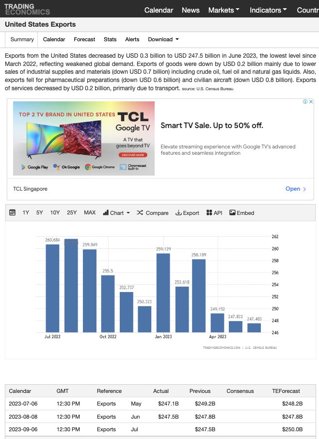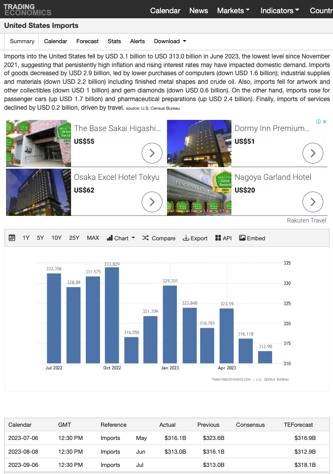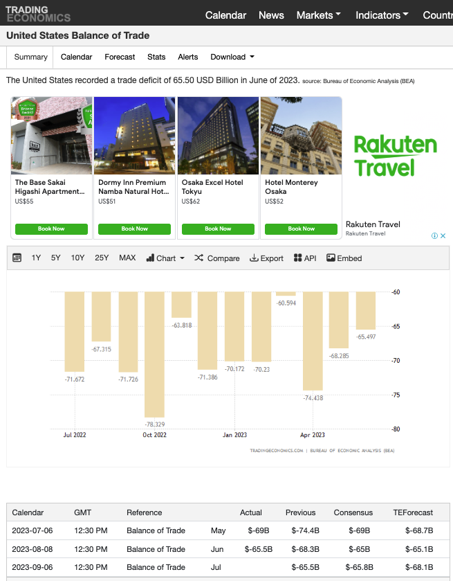 thus, the balance of trade for the month ending June 2023 stands at -$65.497B (negative). This implies that the value of imports is more than the value of exports.