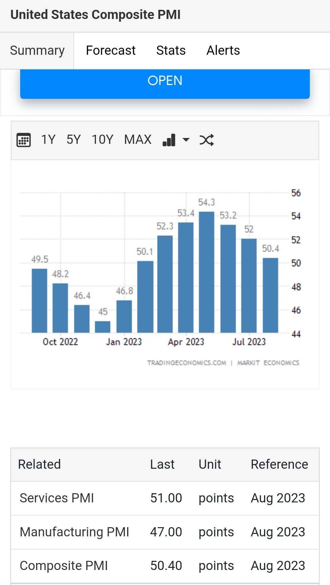 For Aug 2023, the PMI are 51.00, 47.00 and 50.40 for services, manufacturing and composite respectively. Composite PMI refers to the combination of both services and manufacturing PMI. This implies that the manufacturing sector is contracting whereas the services sector expands.