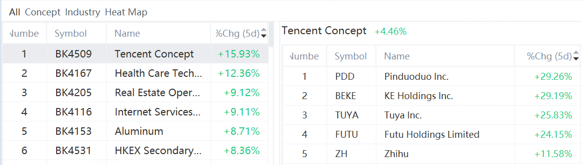 Stocks continued their climb during a light-volume week. The best-performing concepts are Tencent concept, health care tech and real estate operation.