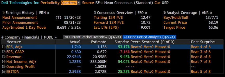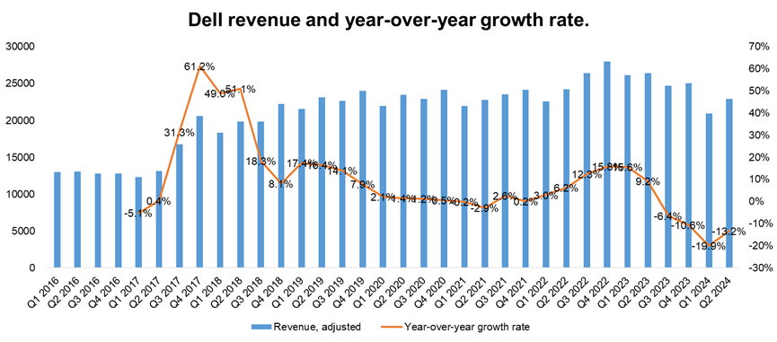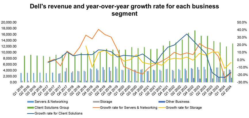 Last Thursday after the market closed, Dell released its second-quarter earnings for the 2024 fiscal year (covering the three-month period ending on August 4th), with revenue and net profit significantly surpassing analyst expectations:
