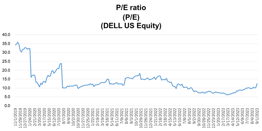 From a valuation perspective, Dell currently has a P/E ratio of 12.5x, indicating there is still room for upward potential:
