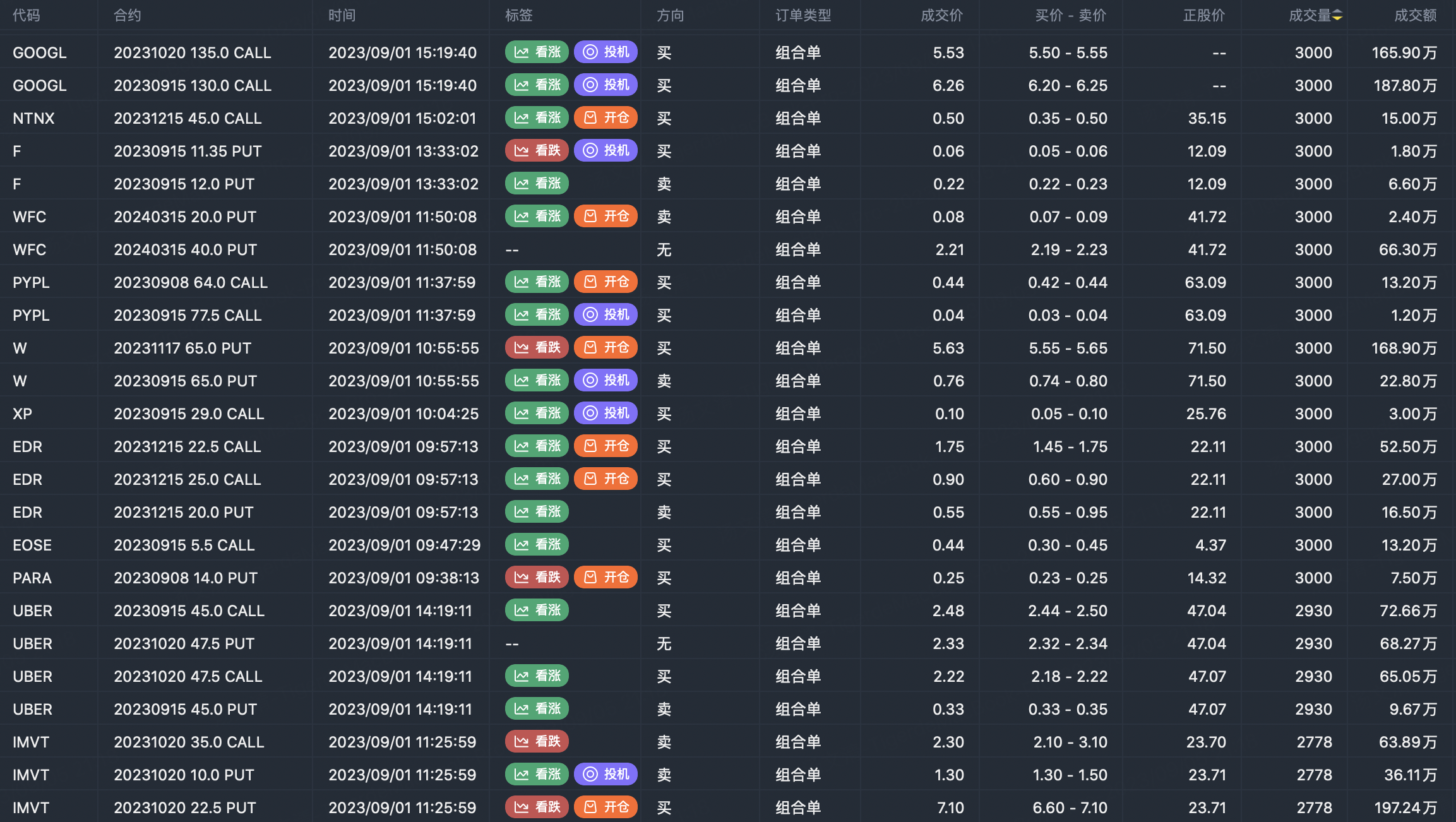 Note: This image data is from Tiger PC. This screening is a significant portfolio of options contracts in the market. Portfolio opening includes a variety of underlying trends, requiring traders to further master the basic knowledge of options for analysis and judgment.