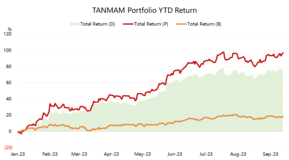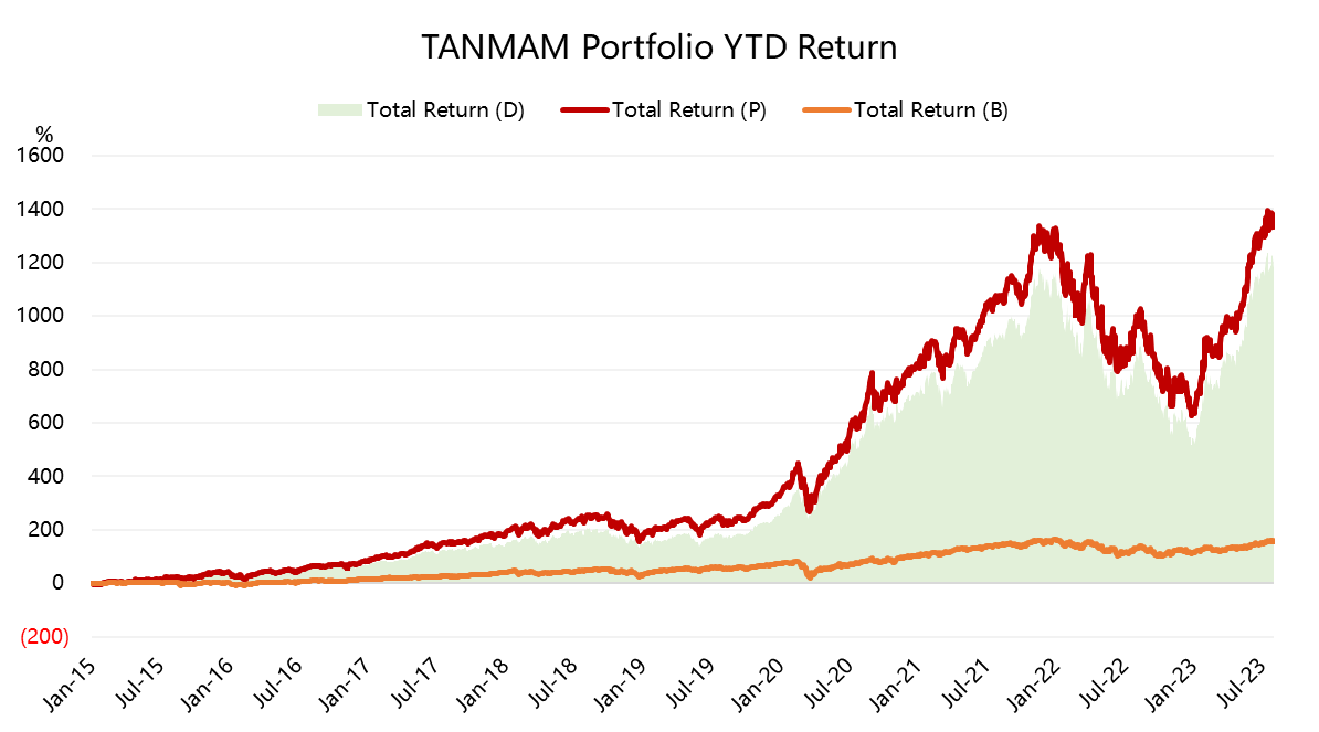 We combine the seven companies with the highest weights into an investment portfolio known as the "TANMAM" portfolio.