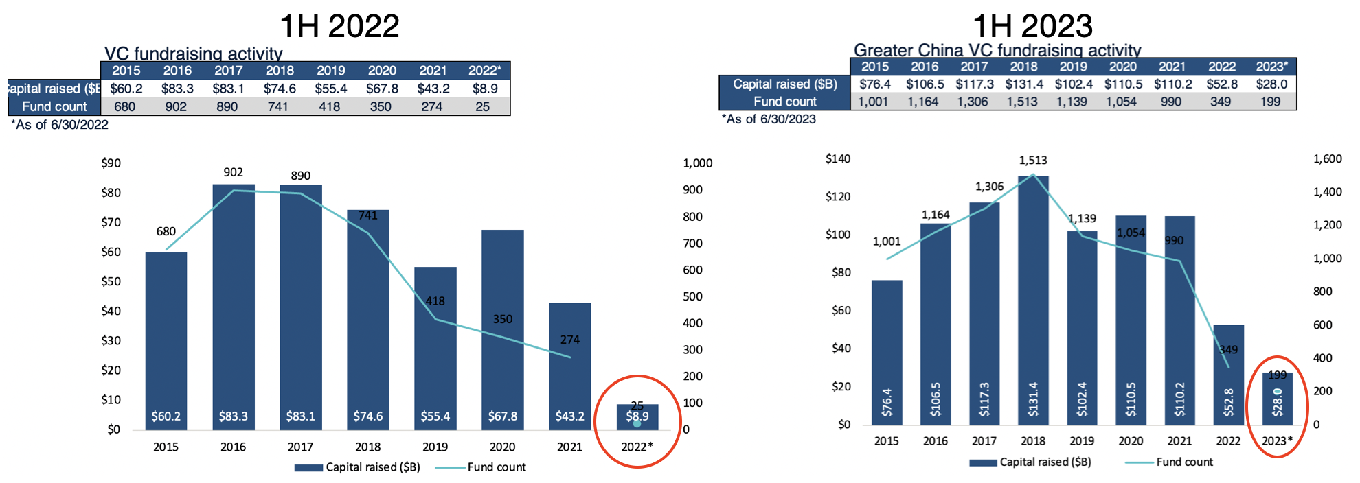 1H 2022 & 1H 2023 new VC fund raised (Pitchbook )
