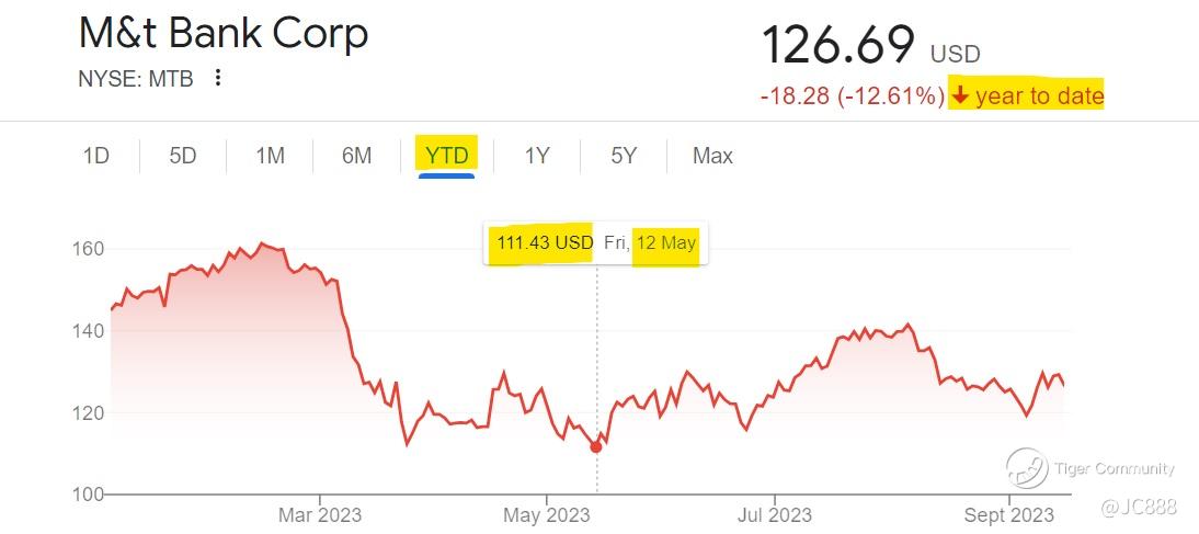 Using $M&T Bank(MTB)$ YTD performance — one of the regional banks affected by the “new” regulation — for illustration.