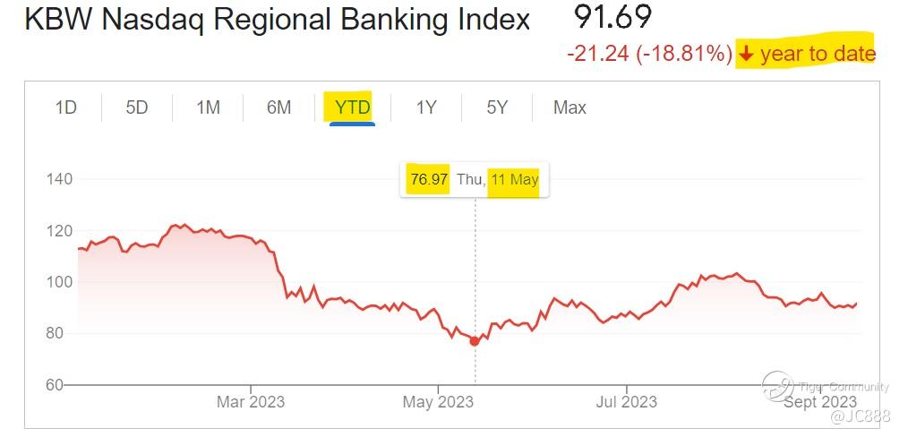 Nasdaq’s regional bank index YTD performance is down -18.81% (see above).