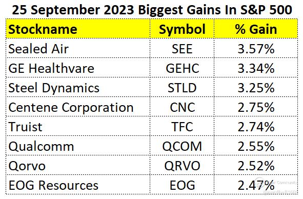 S&P 500 Biggest Gains Stocks (25 Sep 2023)