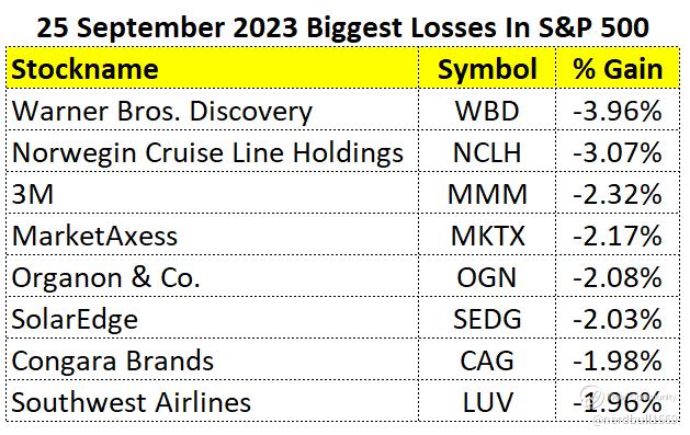 S&P 500 Biggest Losses Stocks (25 Sep 2023)