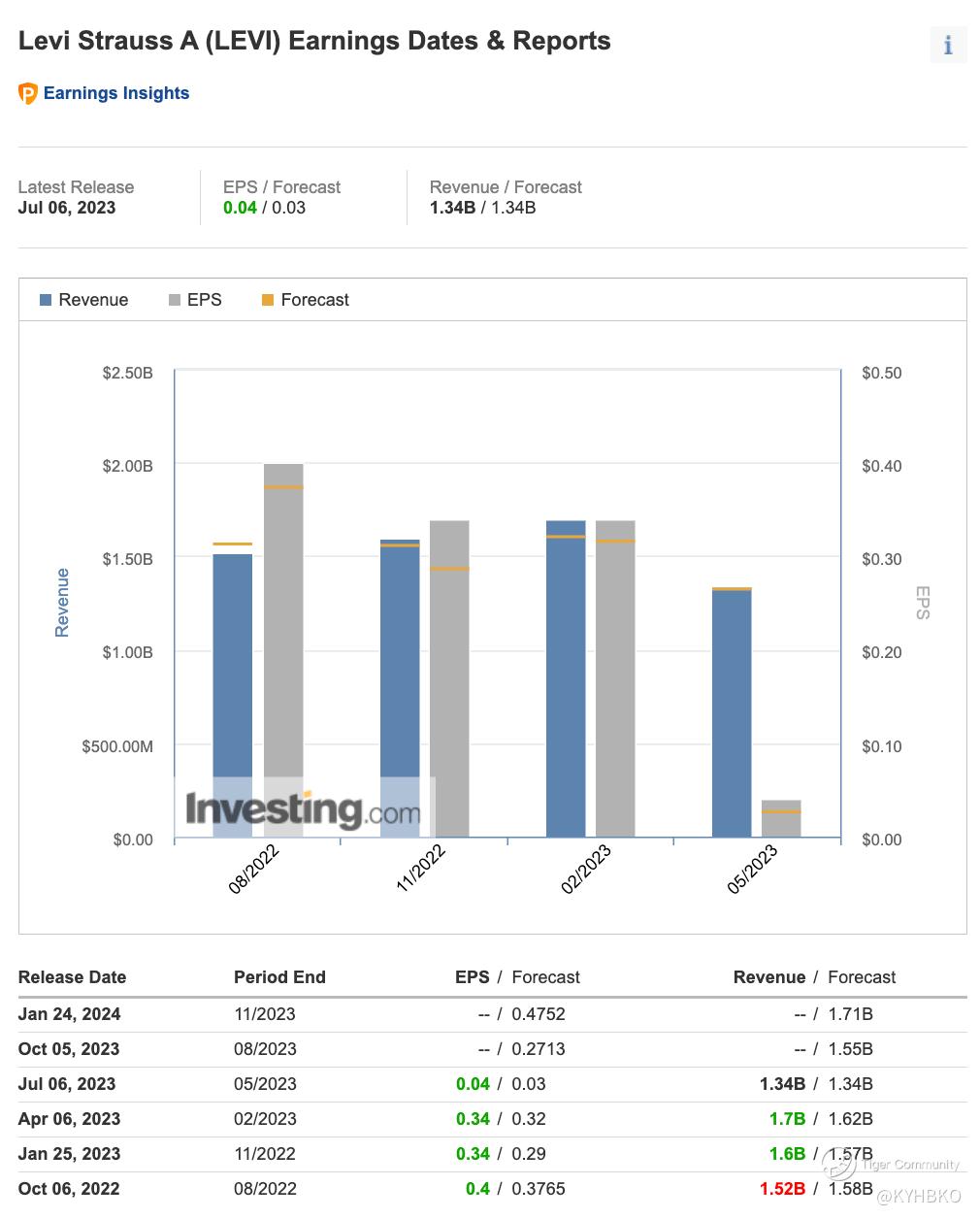 For the coming earnings, the forecast of the EPS and revenue are 0.2713 and 1.55B respectively. Will Levi be able to break out from the current range?