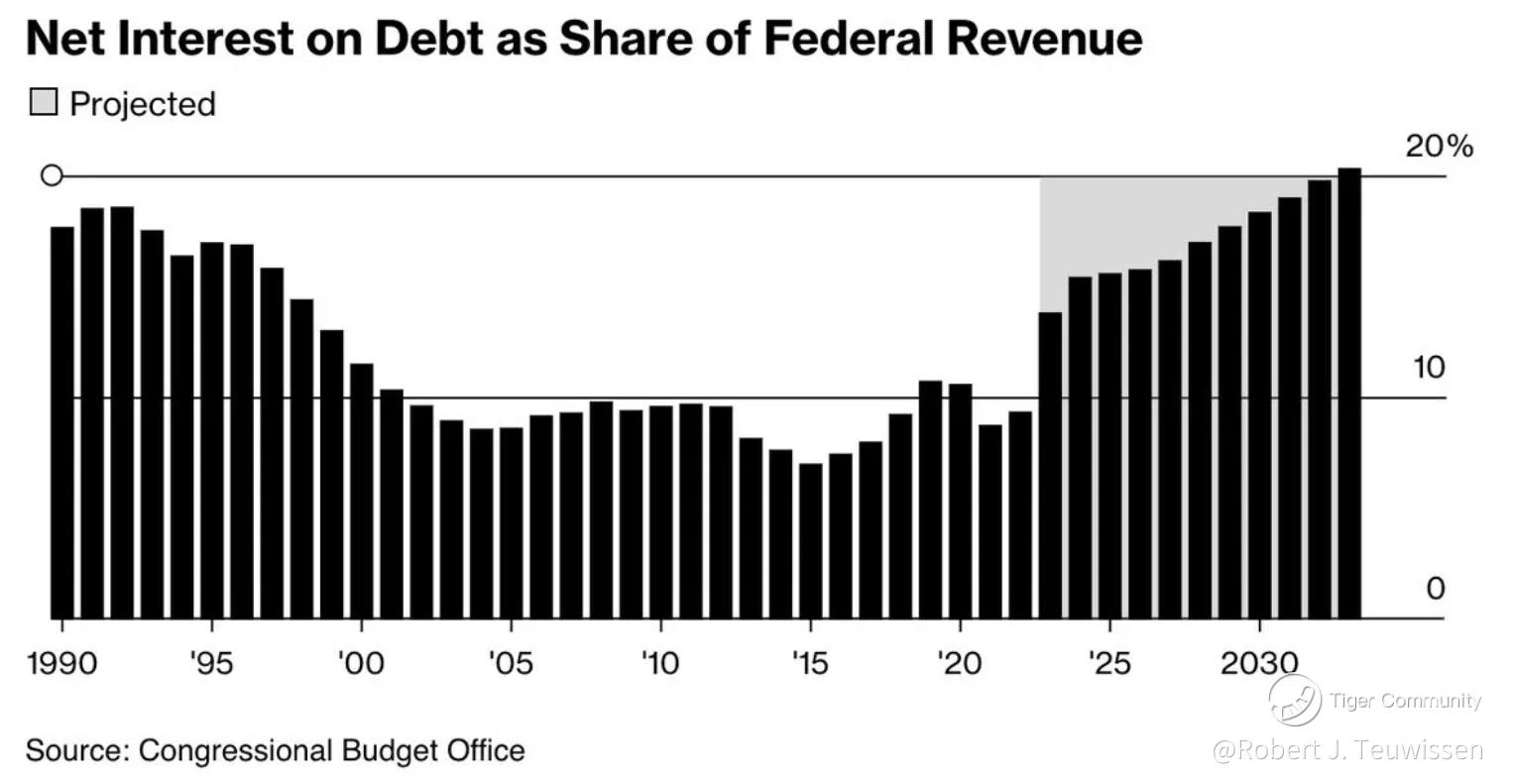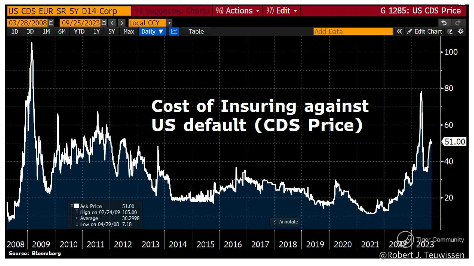 8. Debt. Countries with high debts (to foreign countries) can always repay their debts, provided they have their own currency. The big question, though, is what then is the value of the currency? The mechanism of financial repression and reflation ensures that the nominal economy grows more than the nominal debt, often through more inflation. The US national debt has recently surpassed $33 trillion. The US government may soon have to shut down under the credit ceiling. Furthermore, credit rating agencies S&P and Fitch have downgraded the US from AAA to AA, but in a world where there is a glaring shortage of risk-free paper, US Treasuries continue to fill this role for now.