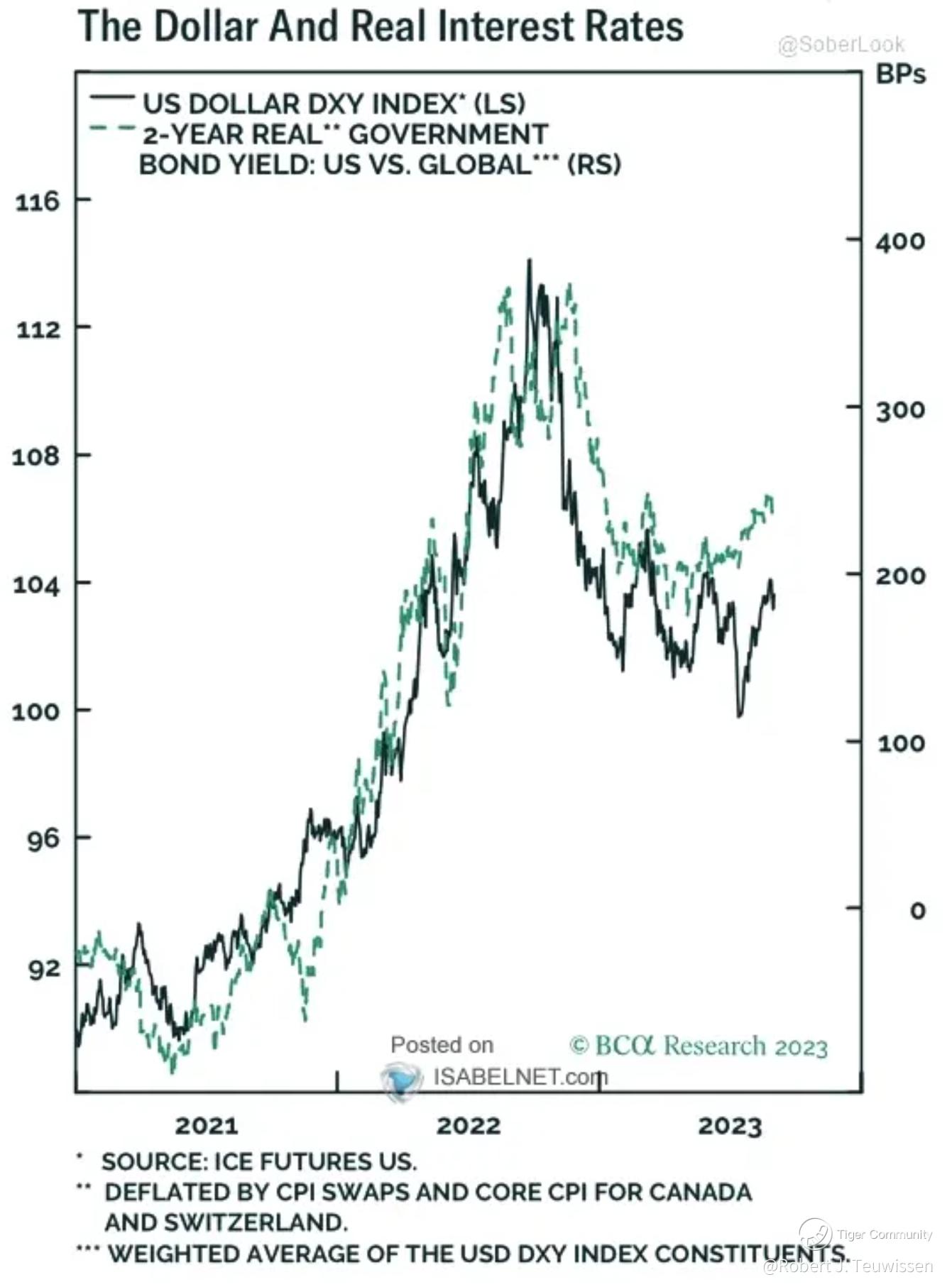 Top-down, a strong economy also includes a strong currency. In that respect, it is explicable that the dollar is stronger than the euro, for example. Especially now that the euro has slipped towards a stagflationary scenario in recent months while the US economy seems to be making a perfect landing, this helps the dollar. In the long run, economic growth is more of an argument as to why the dollar will eventually lose out to, say, the renminbi.