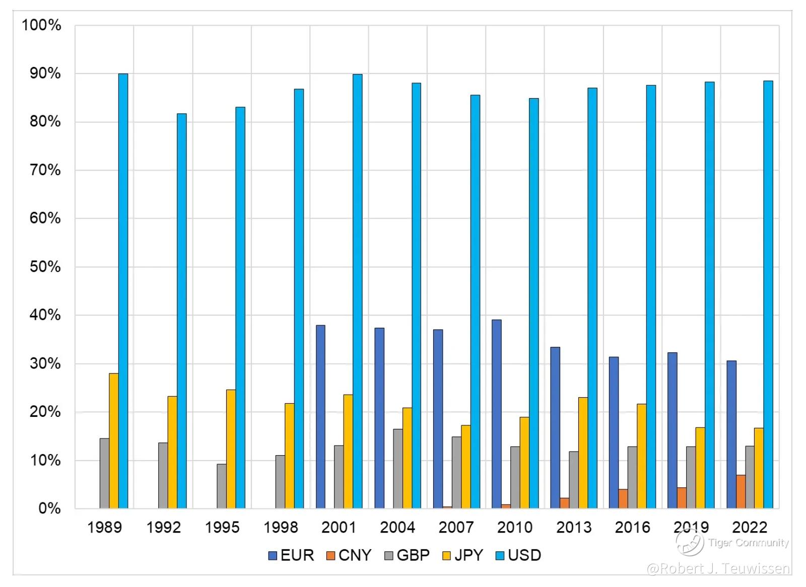 6. Dollarization. Since the Great Financial Crisis, the Chinese have wanted to get rid of their dependence on the dollar. This was not even so much because of a deteriorating relationship with the US, but mainly because the Chinese economy was too dependent on the dollar and thus US banks. Actually, Asian countries have been trying to reduce their dependence on the dollar since the 1997 Asia crisis. Incidentally, saying goodbye to the reserve currency is not that easy. It is not like Microsoft’s operating system. It is not the best operating system, but because everyone uses it, it is hard to get out of it. Incidentally, in recent times you see rather a de-euroisation, which of course is also linked to European sanctions against the Russians, which has reduced the euro’s appeal for wealthy people outside the eurozone. Gradually, the euro’s share in world trade is declining and the renminbi’s share is rising. However, the dollar remains by far the most important currency.