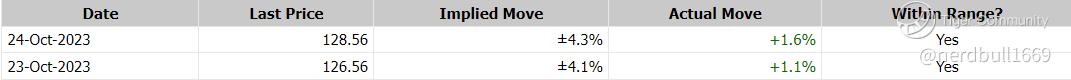 If we looked at the Option Implied Move, for 23 Oct and 24 Oct, the actual move is within range. Based on 4 quarter historical average, the option valuation is undervalued.