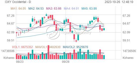 As of 25 OCT, $Occidental(OXY)$ priced at $63.27, has experienced a 3-month loss of -2.48%% and the YTD 2023 is 0.44%.