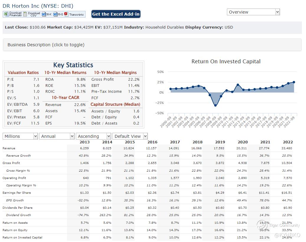 Given that Berkshire only buys stocks of great companies with a good margin of safety (which I typically assume at 50%). This implies that the 3 homebuilders’ stock prices in Q2/2023 are undervalued by a good margin. Let us look at DHI in detail.