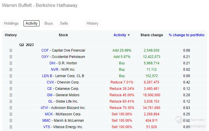 As per the Q2/2023 13F filings, Berkshire has bought the following: