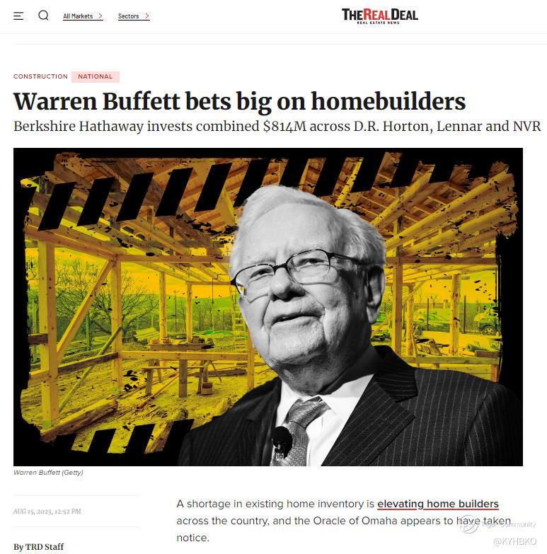 This news broke in Aug 2023 when Berkshire’s recent investments into a few homebuilders in the USA.