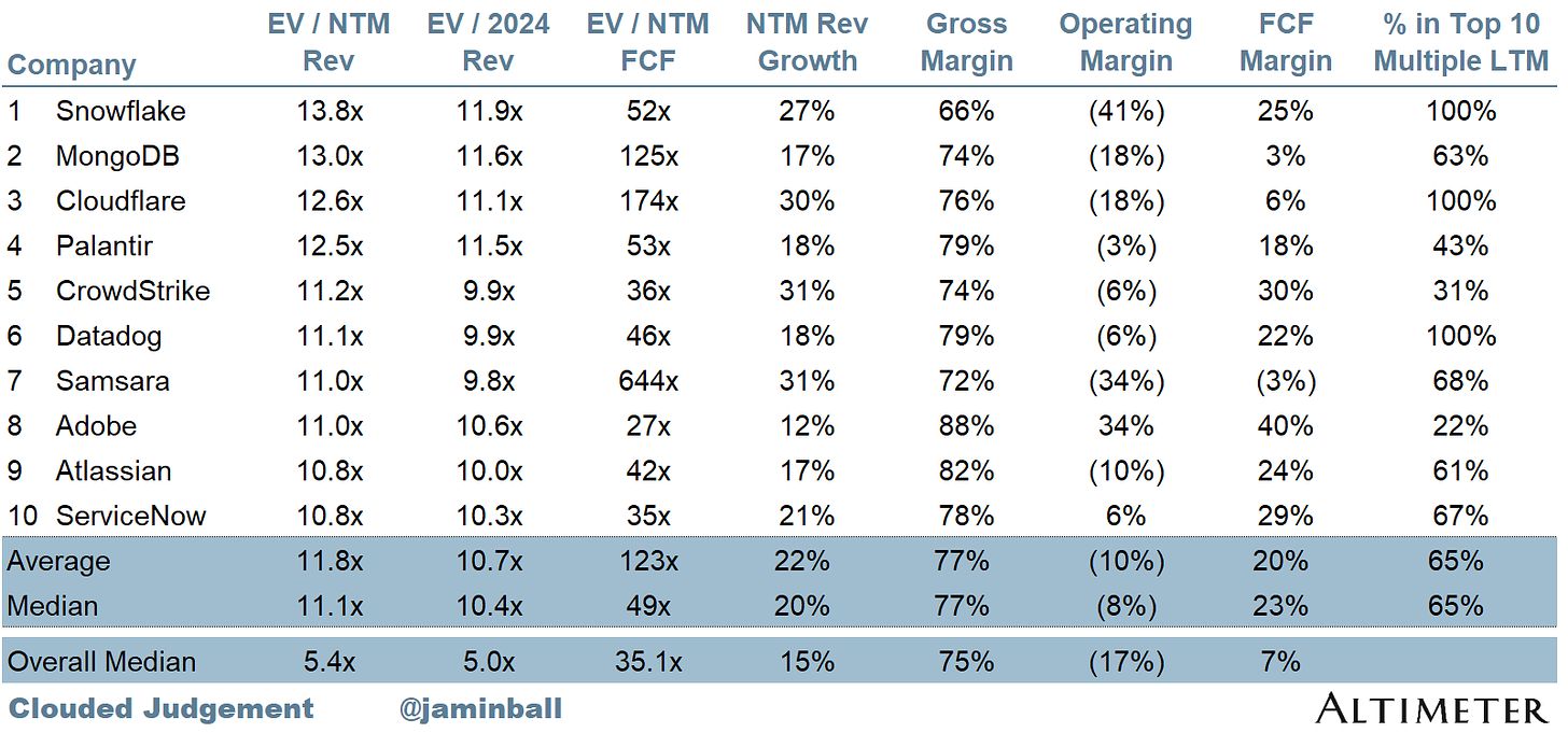 Top 10 EV / NTM Revenue Multiples