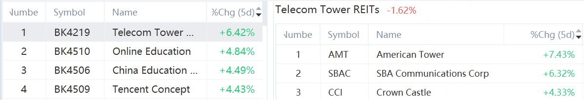 It was another turbulent week for stocks, as big tech earnings pulled the market lower ahead of next week’s Fed decision. The best-performing concepts are telecom tower REITs, online education and China education stocks.