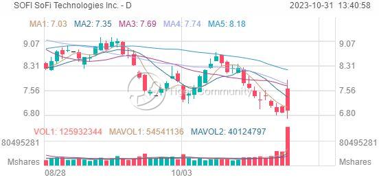 SoFi rallied to $7.88 HOD, only to drop to $6.68 (LOD) and close up only 7 cents @ $6.94, a disappointing reaction to the ER. The candle is a big upper wick that represents price rejection this time while it can lead to a test of the top of the wick, 7.88, in uptrends.