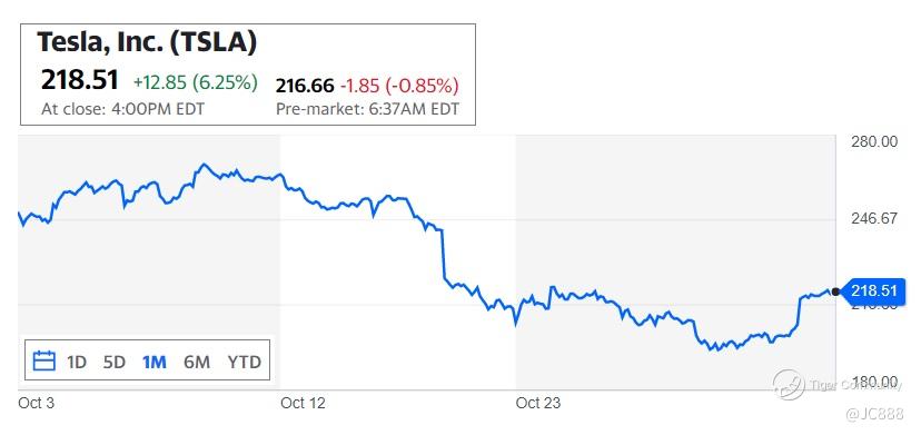 On the first 2 days of trading in November, Tesla managed to recover some grounds, approximately +3.5% but not enough to offset the > -11.2% lost in less than a month.