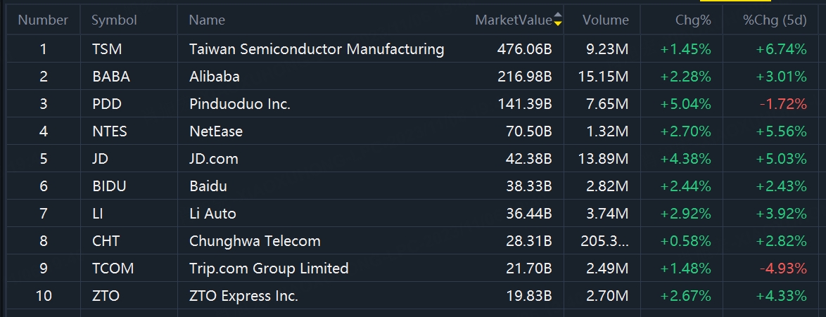Top 10 ADRS by market cap, data as of 11/3/2023