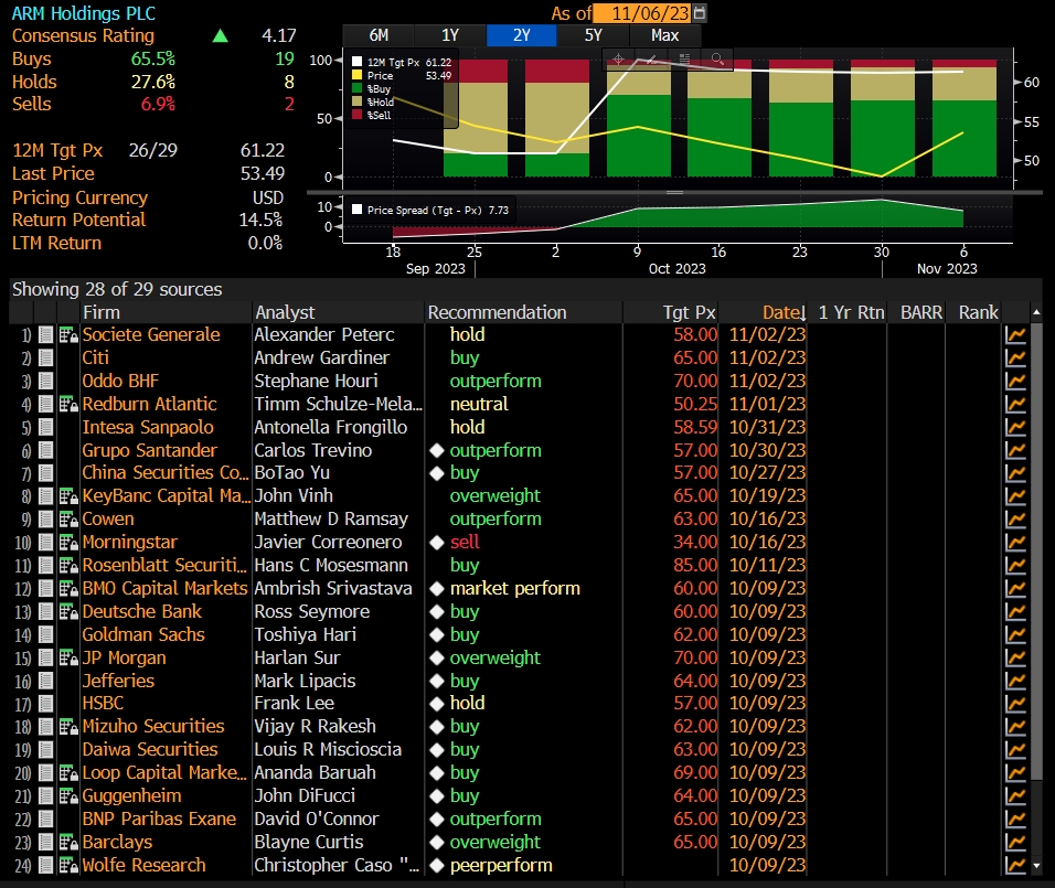 A number of brokerages started coverage of Arm Holdingswith buy-equivalent ratings - including Goldman Sachs, Citi, Jefferies, Guggenheim, Deutsche Bank, and Mizuho Securities - about a month after the company's smashing market debut.