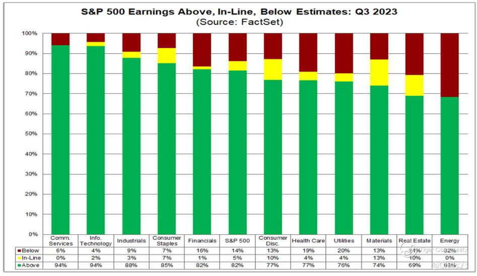 The stock market's ascent has also been underpinned by solid fundamentals, particularly during the third-quarter earnings season for the S&P 500. Notably, the S&P 500 is presently reporting year-over-year growth in earnings for the first time since Q3 of 2022. Of the companies that have disclosed their actual results for Q3 2023, a remarkable 82% have surpassed their estimated earnings per share (EPS), with prominent contributions from firms within the Consumer Discretionary and Information Technology sectors. Looking ahead, industry analysts are anticipating earnings growth of 3.9% for the fourth quarter of 2023 and an even more robust 11.9% for the entire calendar year of 2024.