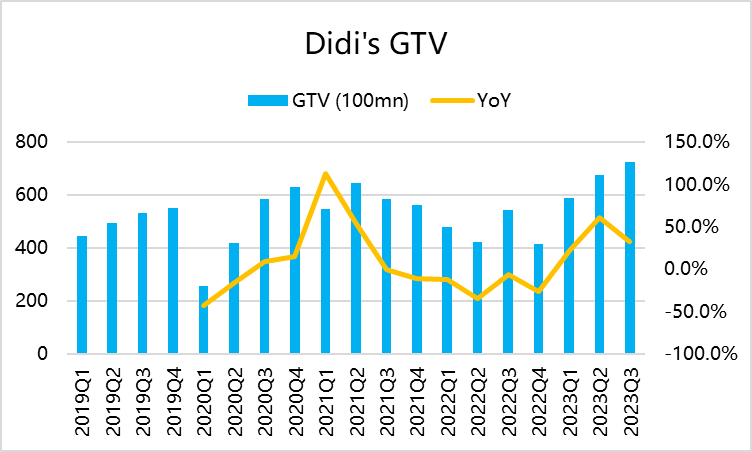 The daily average order volume in Q3 reached a new peak at 31.3 million orders. DiDi's Gross Transaction Value (GTV) on its core platform was 91.5 billion yuan, a year-on-year increase of 37%. The GTV for China's mobility services was 72.5 billion yuan, a year-on-year increase of 33%; the GTV for international business was 19 billion yuan, a year-on-year increase of 52%.