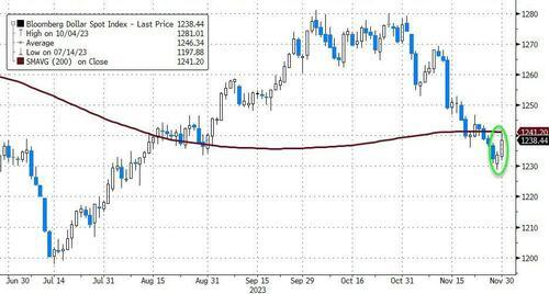 The market is optimistic that interest rates have peaked and the Federal Reserve will shift to easing policies. Indicators such as the $USD Index(USDindex.FOREX)$ and U.S. bond yields pulled back significantly in November. The U.S. dollar fell 3% in November, its largest monthly decline since November 2022. From a technical perspective, the index is currently under pressure below the 200-day moving average.