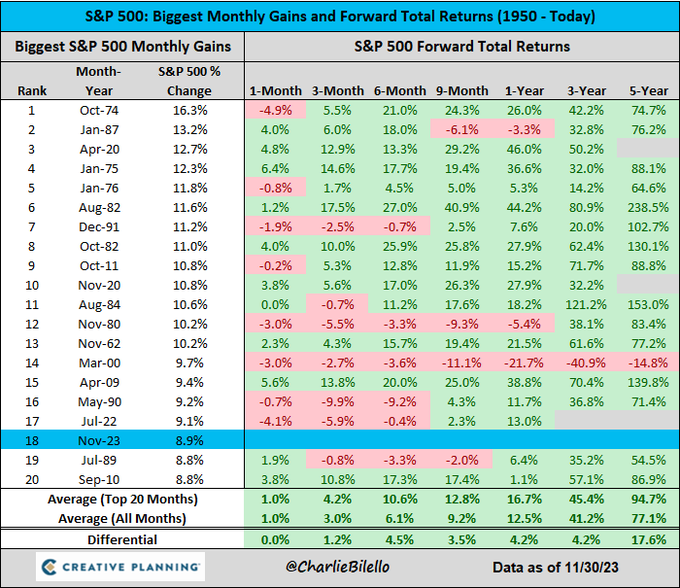 The $S&P 500(.SPX)$ gained 8.9% in November, the 18th biggest monthly advance since 1950. and this was the 10th-best month for the $S&P 500(.SPX)$ in nearly 40 years.