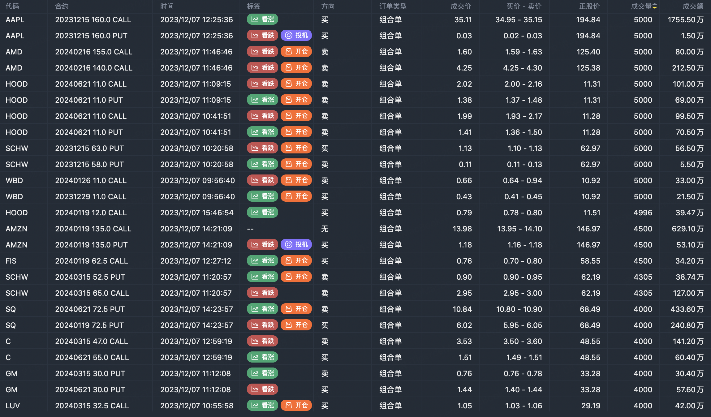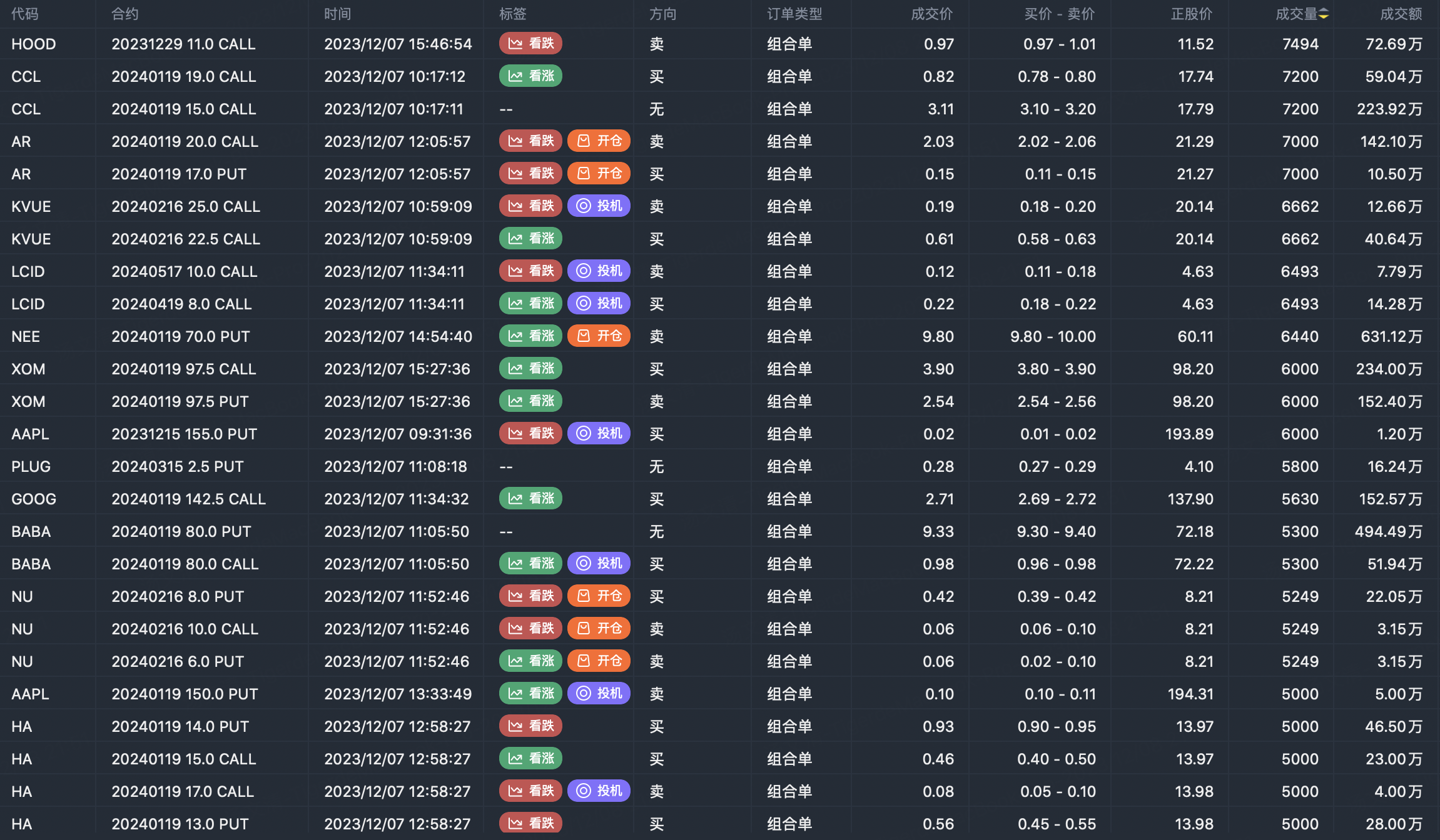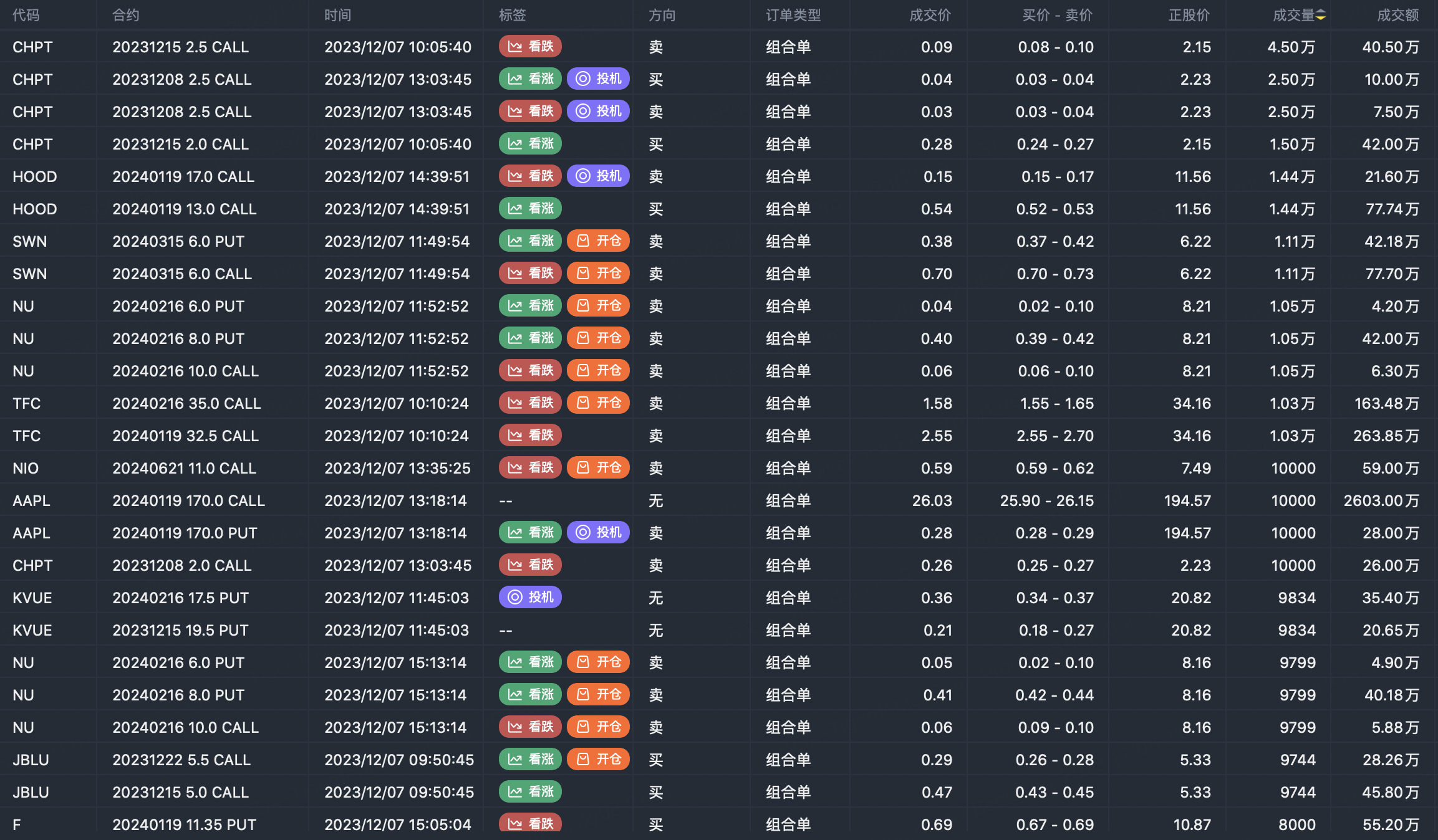 Note: This image data is from Tiger PC. This screening is a significant portfolio of options contracts in the market. Portfolio opening includes a variety of underlying trends, requiring traders to further master the basic knowledge of options for analysis and judgment.