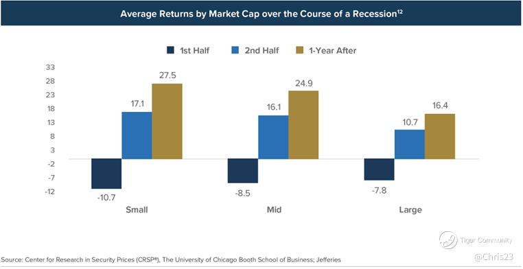 In a recent announcement, Federal Reserve Chair Jerome Powell conveyed that the Fed had concluded its interest rate hikes and hinted at the possibility of three rate cuts in 2024. This dovish stance prompted a notable rally in US stocks, with the IWM surging over 3% in its most robust single-day performance since 2020. This development suggests a potential year-end rally for small-cap stocks, fuelled by growing expectations of a brighter economic outlook. Historical data indicates that small-cap stocks tend to outperform their larger counterparts coming out of economic slowdowns.