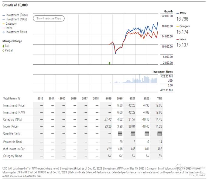 Investor reluctance towards small caps is partly influenced by information asymmetry, as identifying winners becomes more challenging due to limited information compared to large-cap stocks. To address this challenge, investing in a small-cap ETF may be the prudent choice for investors lacking the expertise to conduct exhaustive due diligence on numerous small-cap stocks. The Avantis US Small Cap Value ETF ($Avantis U.S. Small Cap Value ETF(AVUV)$) emerges as a compelling option. This 5-star rated fund aims for long-term capital appreciation by investing primarily in a diverse group of U.S. small-cap companies across various market sectors. AVUV consistently ranks among the top quartile of its peers, delivering exceptional returns. Its investment strategy emphasizes companies trading at low valuations with higher profitability ratios. Furthermore, efficient portfolio management and trading processes are designed to enhance returns while minimizing unnecessary risks and costs for investors. AVUV's proficient investment strategy, coupled with its diversification benefits, positions it seamlessly within an investor's asset allocation strategy.