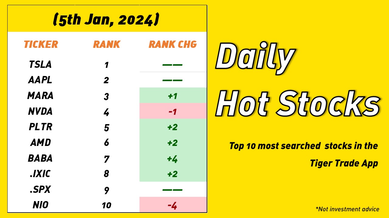 2.Here are the stocks mentioned by the above Tigers: $NVIDIA Corp(NVDA)$ $Marathon Digital Holdings Inc(MARA)$ $Riot Blockchain, Inc.(RIOT)$ $CleanSpark, Inc.(CLSK)$ $Invesco QQQ Trust-ETF(QQQ)$ $Palantir Technologies Inc.(PLTR)$ $NVIDIA Corp(NVDA)$ (Not investment advice)