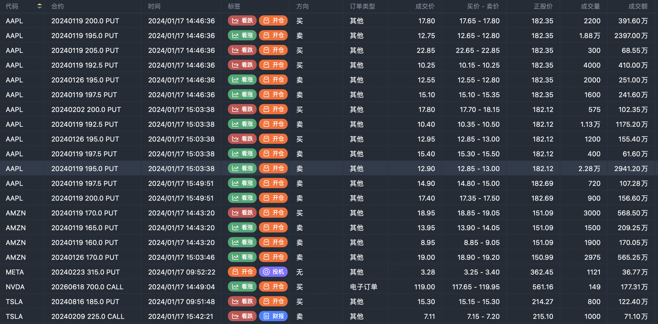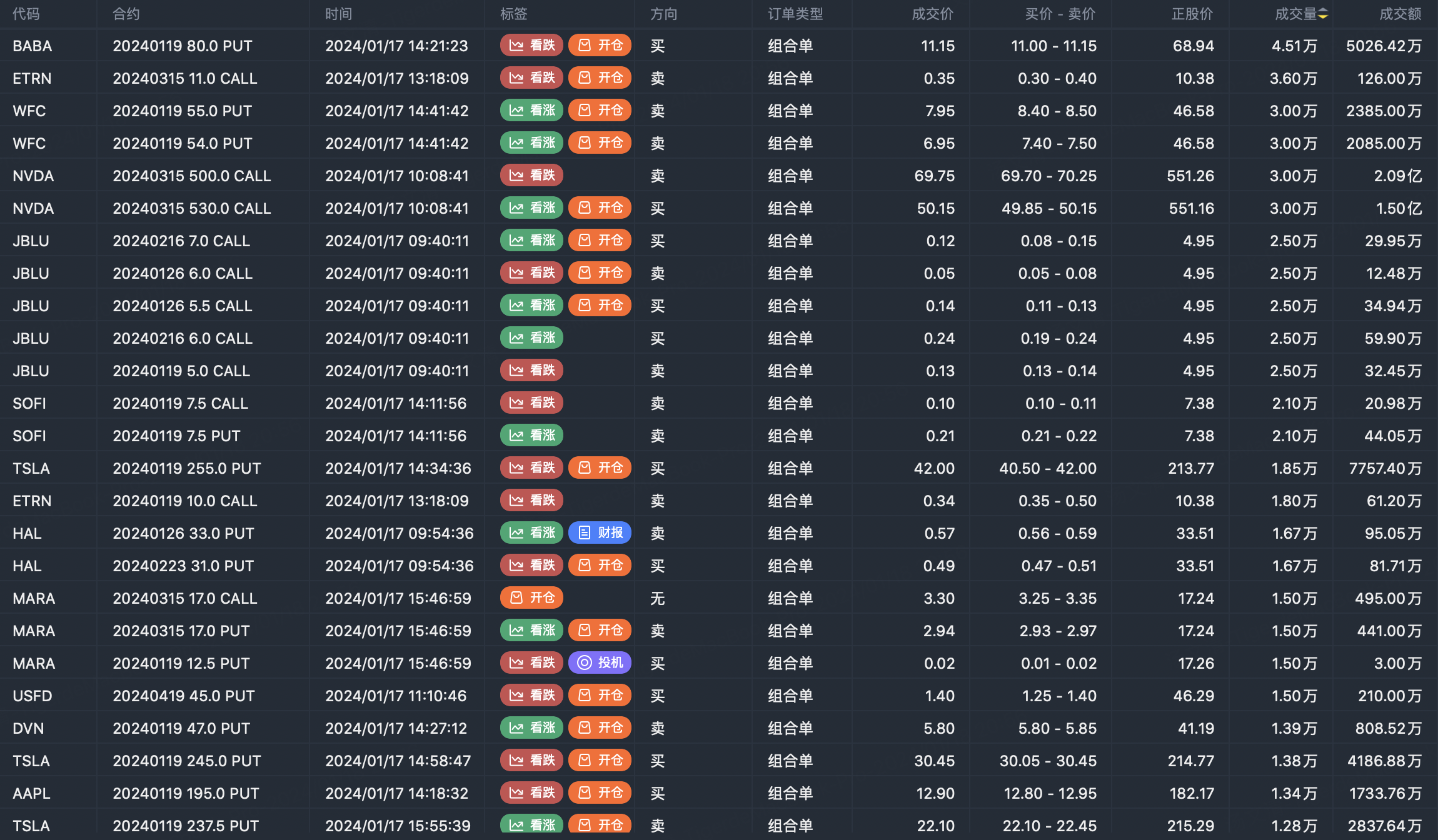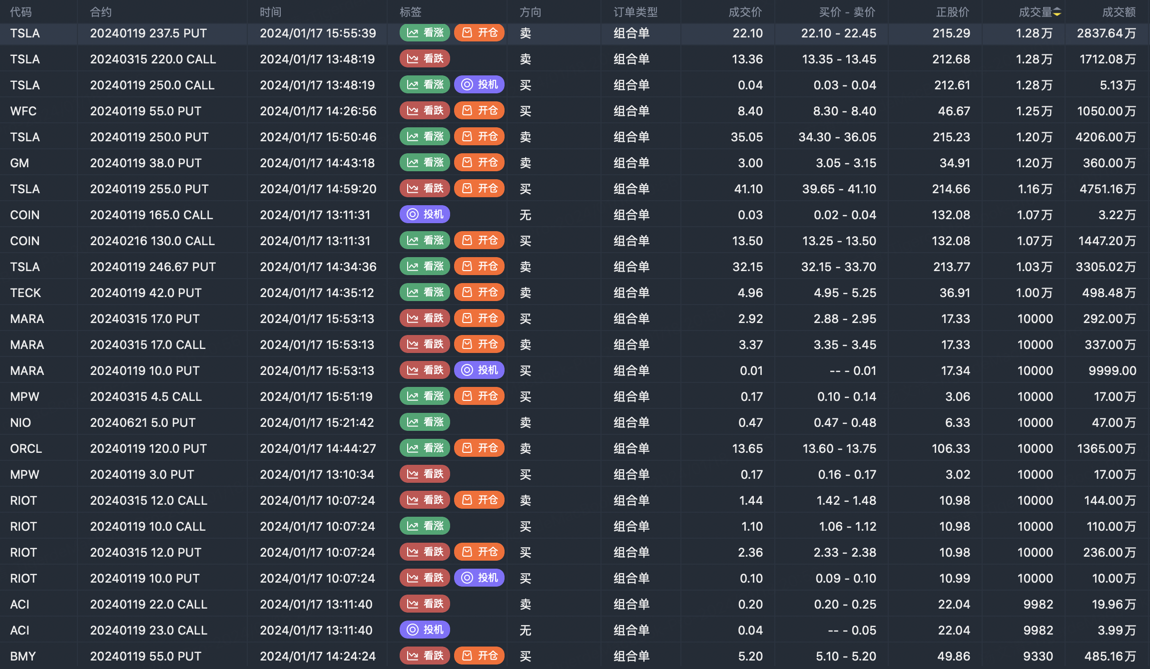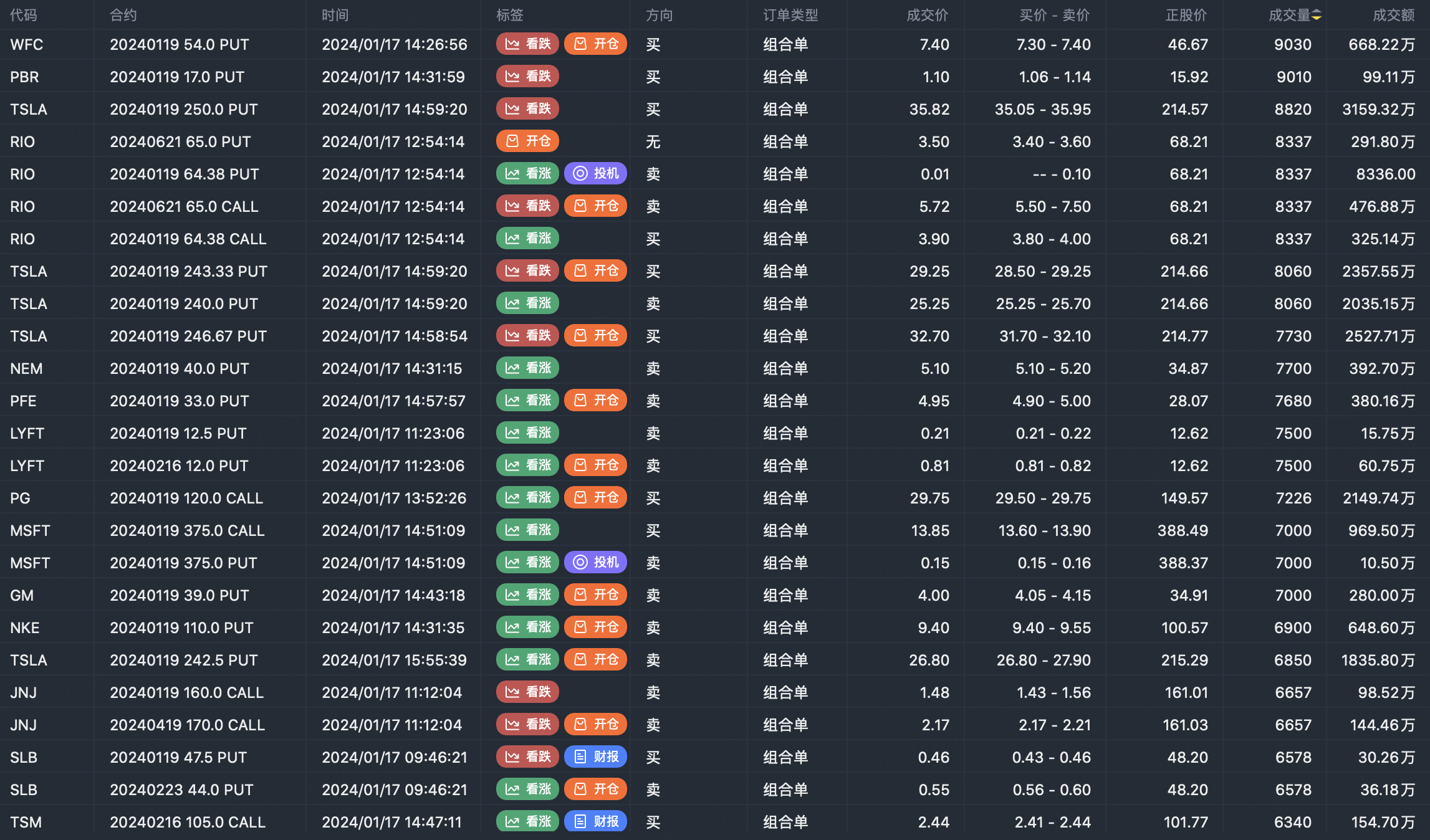 Note: This image data is from Tiger PC. This screening is a significant portfolio of options contracts in the market. Portfolio opening includes a variety of underlying trends, requiring traders to further master the basic knowledge of options for analysis and judgment.