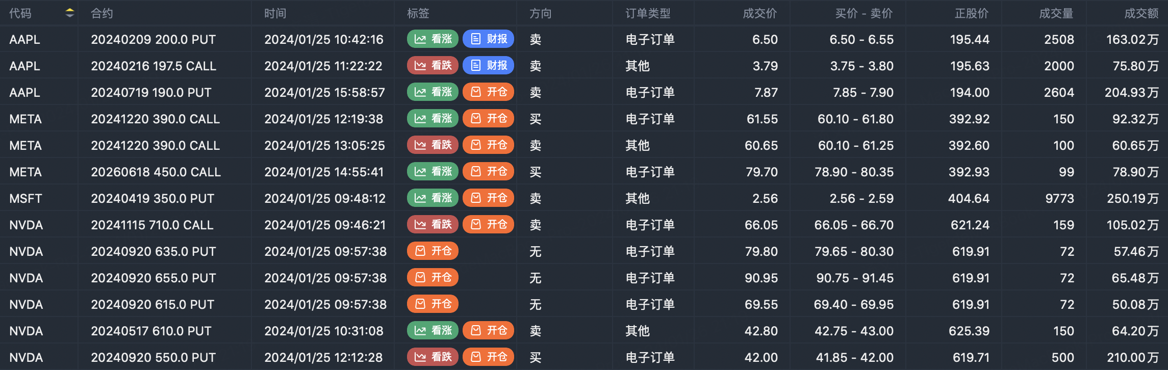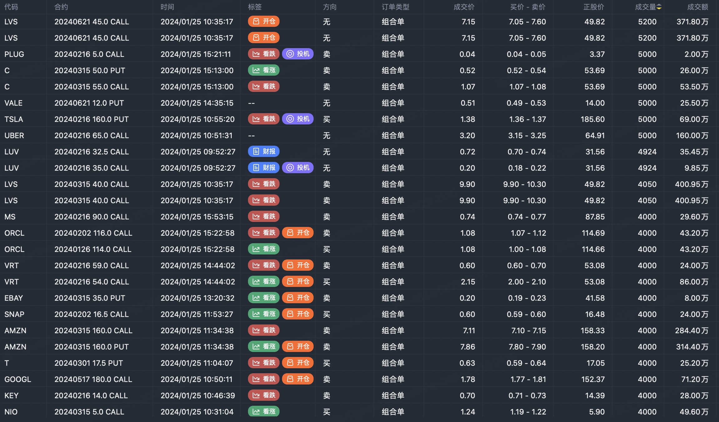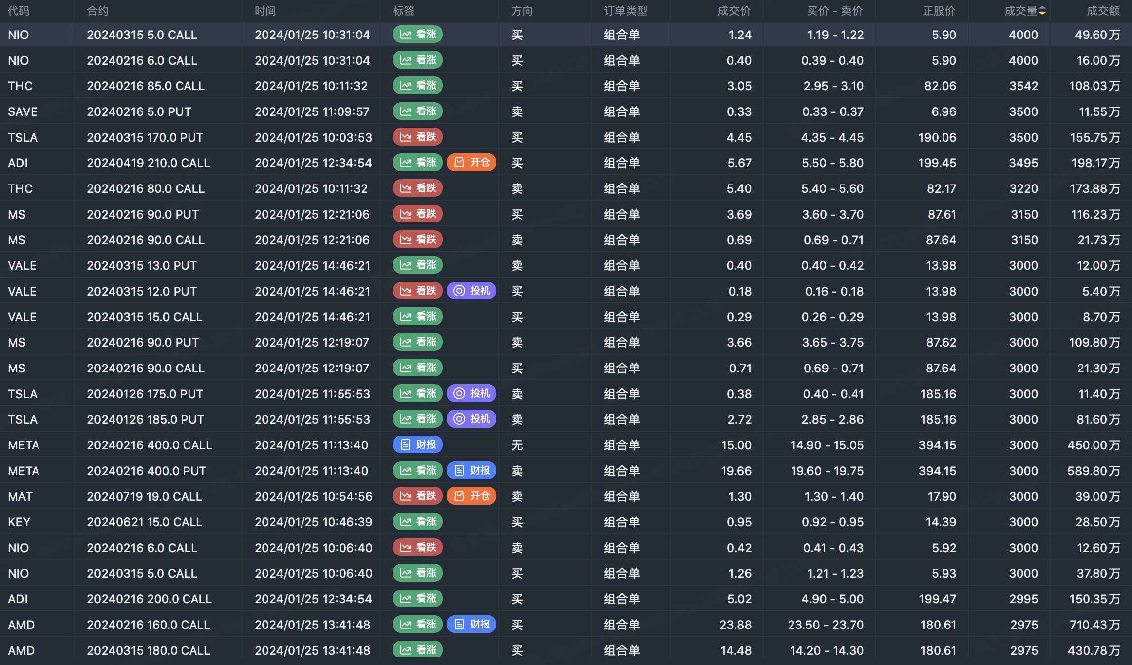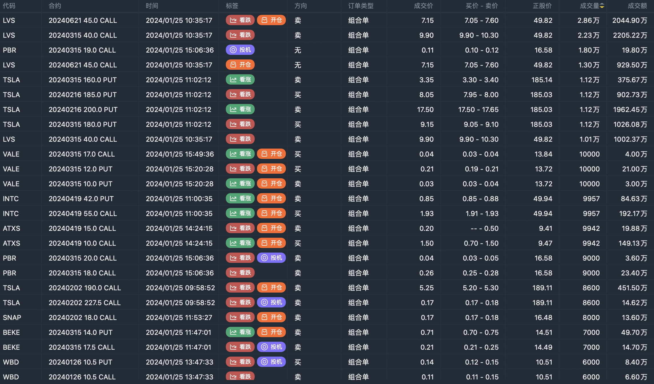 Note: This image data is from Tiger PC. This screening is a significant portfolio of options contracts in the market. Portfolio opening includes a variety of underlying trends, requiring traders to further master the basic knowledge of options for analysis and judgment.