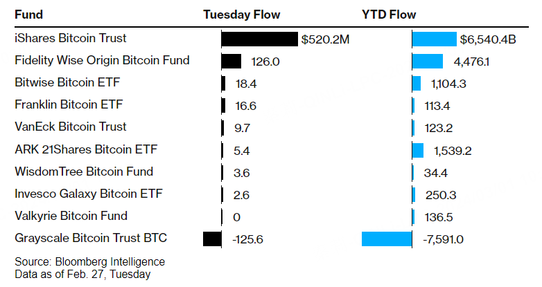 Wall Street is earning millions in fees through these ETFs, partly thanks to Bitcoin's 45% surge this year, with the recent breakthrough of $60,000. However, Wall Street's interest in cryptocurrencies goes beyond just ETFs; they hope these products will serve as a "gateway" to other funds, trading strategies, and digital asset services, making cryptocurrencies a choice for mainstream investors and the $100 trillion global wealth management industry.