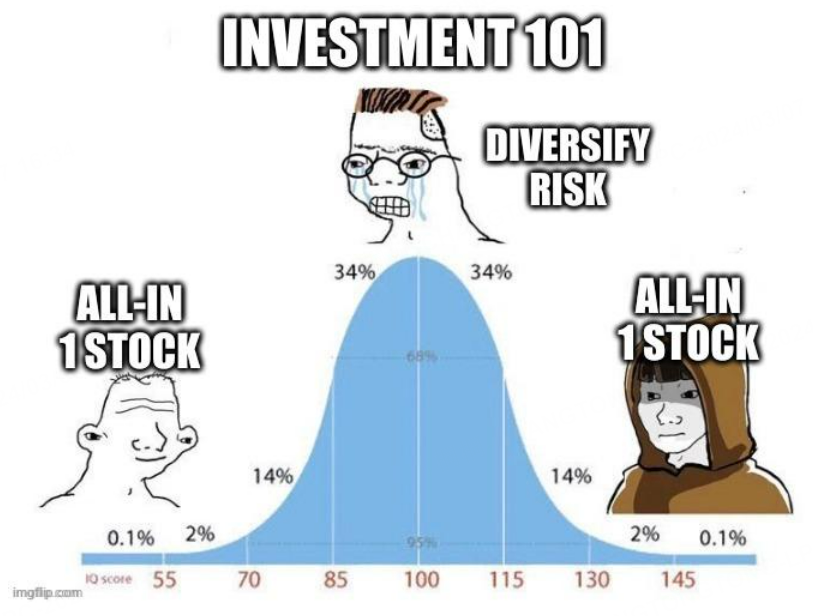 Even though we are 100% sure that the company is doing well, but we never know if there will be any unexpected black swam issue that might simply cause the stock to plunge suddenly. So, by diversify your portfolio, you distribute the potential risk and it is more sustainable to invest this way in long run.