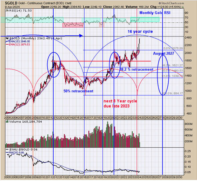 8 year cycle in $gold bottom in last 2023 and could last into August 2027.