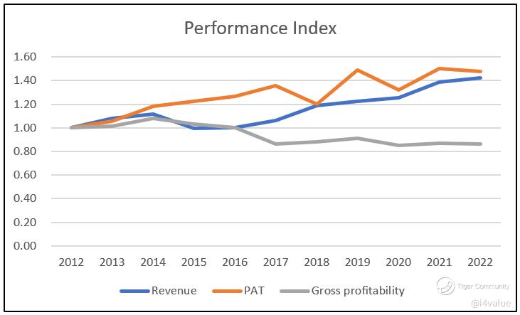 You would think that with top line and bottom line growth, this would be a good performance. However, it ROE its 2023 was about the same as that in 2012. This standstill return was because there was declining operating and capital efficiency.